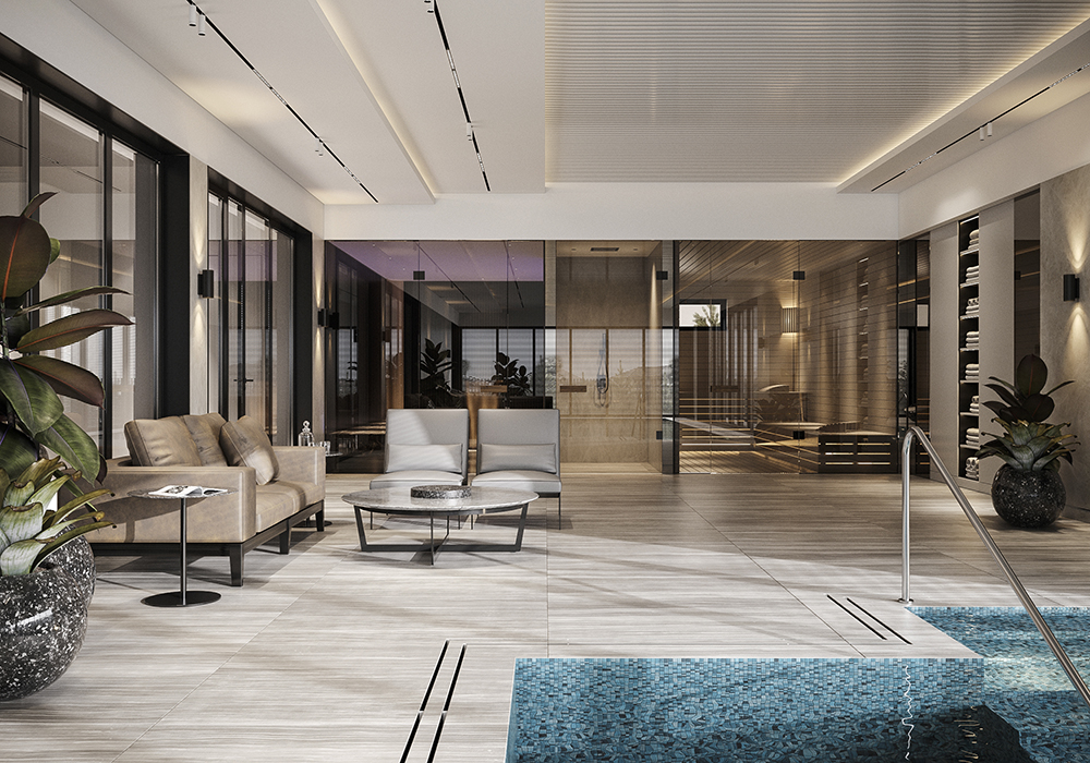 泳池、桑拿房设在一层,