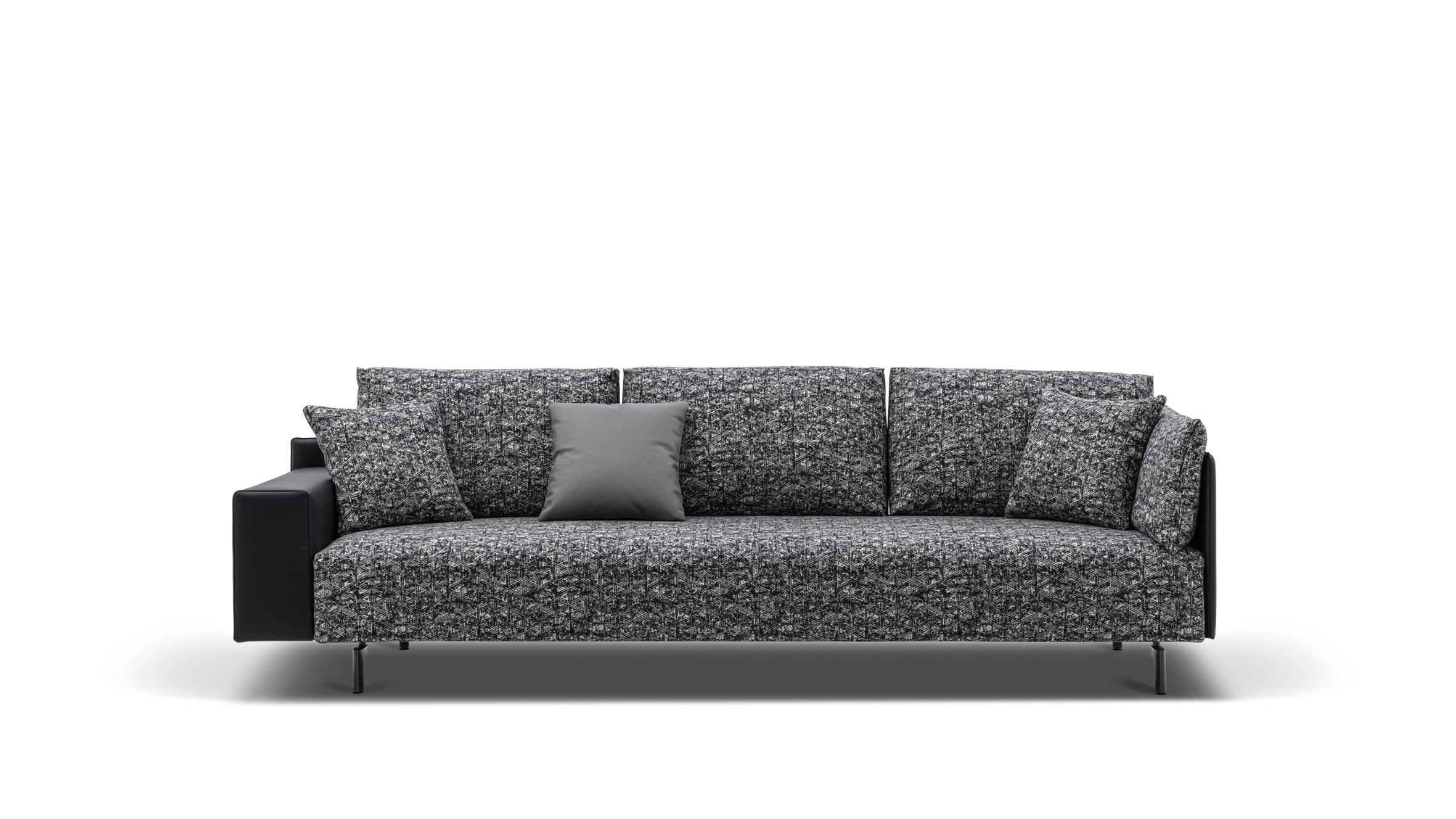 设计灵感来源于中国的甲胄元素,融合了中国传统文化和西方设计理念。方正、挺拔的外框,宽窄不同的扶手,搭配造型独特的靠垫和整体设计的坐垫,精致与舒适兼备。