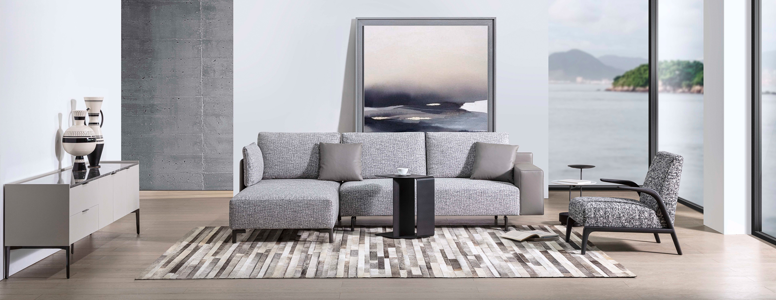 设计灵感来源于中国的甲胄元素,融合了中国传统文化和西方设计理念。方正、挺拔的外框,宽窄不同的扶手,搭配造型独特的靠垫和整体设计的坐垫,精致与舒适兼备。